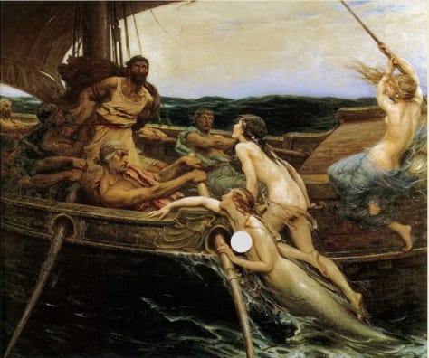 أما في الأدب الإغريقي، فتظهر واحدة من أشهر صور الكائنات البحرية المغنّية في ملحمة هوميروس «الأوديسة» (725–675 قبل الميلاد)،